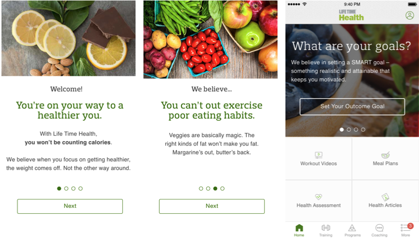 Life Time Health was investing in creating advanced programs (triathlon and 10k), yet users wanted basic and introductory information (energy, eating on the go).